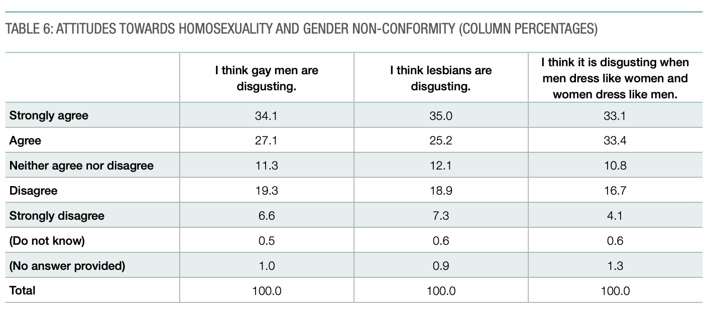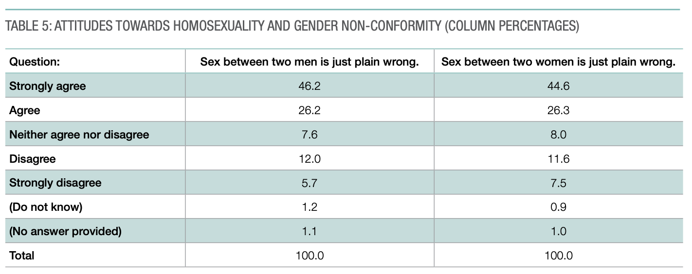 According to Kabelo Rapholo, an LGBT rights activist who has worked with the LGBT group Access Chapter 2, the societal resistance to recognizing same-sex marriages reflects deeply ingrained social, cultural, and religious norms that continue to define acceptable relationships in narrow terms. Indeed, as the 2016 “Progressive Prudes” survey showed, 70% of South Africans view same-sex relations as “simply wrong”, and over 60% view gay, lesbian, bisexual, and trans people as “disgusting.”