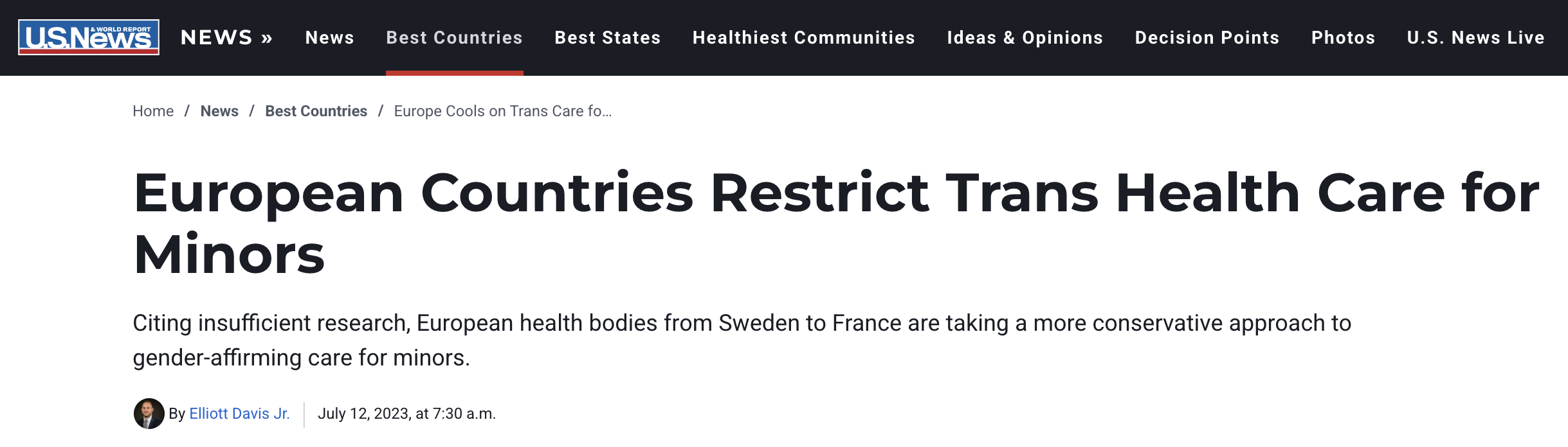 As for transitions, the supposed mental health benefits are often cited as the primary argument by advocates in support of both adult and youth transitions. But the evidence supporting these benefits is of low quality. Many of the studies that purport to show the benefits of transition suffer from a host of serious methodological problems, such as small sample sizes, high dropout rates, lack of proper controls, and self-reported outcomes. Evidence reviews find small and highly inconsistent effects of gender-affirming care on objective mental health outcomes, including psychiatric medication use, mental-health-related hospital visits, and suicides. The general trend of more robust studies shows smaller, insignificant, or even negative effects. Perhaps the very best one could say for gender-affirming care is that we have no idea whether it improves patient outcomes. No other medical procedure, especially one with such severe side effects, would be approved with such a shoddy evidence base. Indeed, highly progressive Western European countries, some of which pioneered trans procedures, have since been pumping the brakes on fast-tracked care with insufficient assessment.